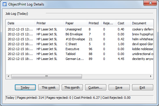 pages printed/rejected and the cost.