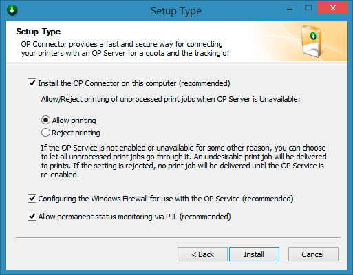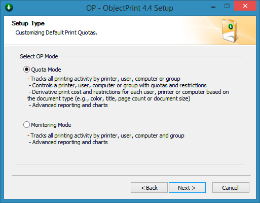 Custom Install. Setup Print Quotas. |