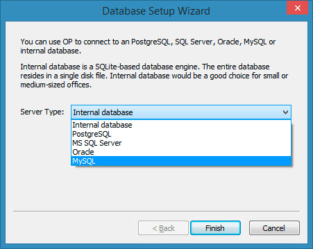 the embedded database supplied with your OP installation or else to connect to an external database. Note that